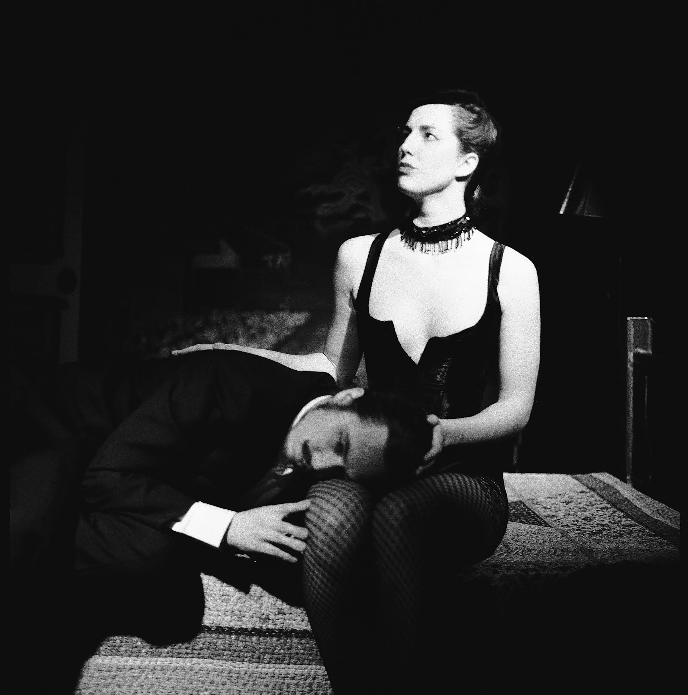Artist and Scenic Designer, Justin Hunter Allen painting over clouds on set at The Ochre House Theatre in 2011